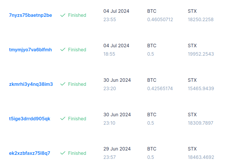 At the end, we consolidated the remaining rewards of 1.43812282 BTC and distributed 0.45368901 BTC to pool members who registered for BTC rewards and 0.02387836 BTC to the Fast Pool reserve. The remaining 0.96053490 BTC were swapped to 38,202.4801 STX.