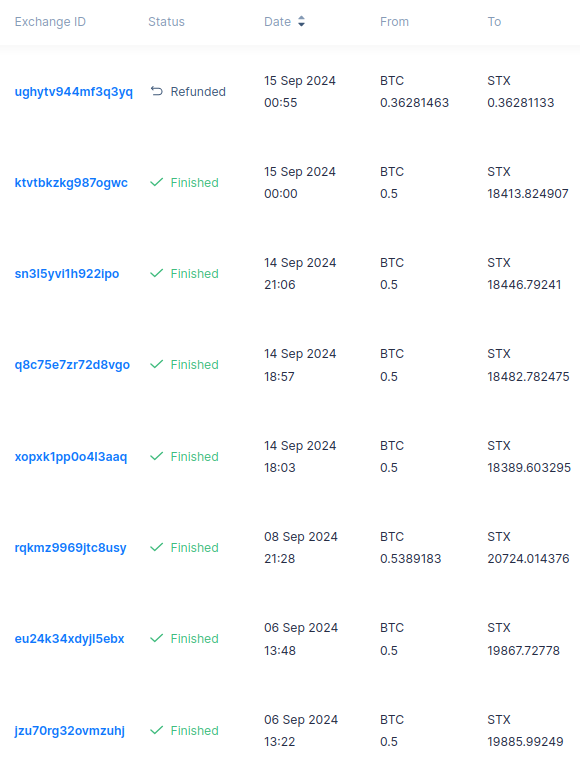 Swapping using simpleswap is not as transparent as using aBTC via Xlink bridge. Therefore, here is a screenshot with the exchange ids: